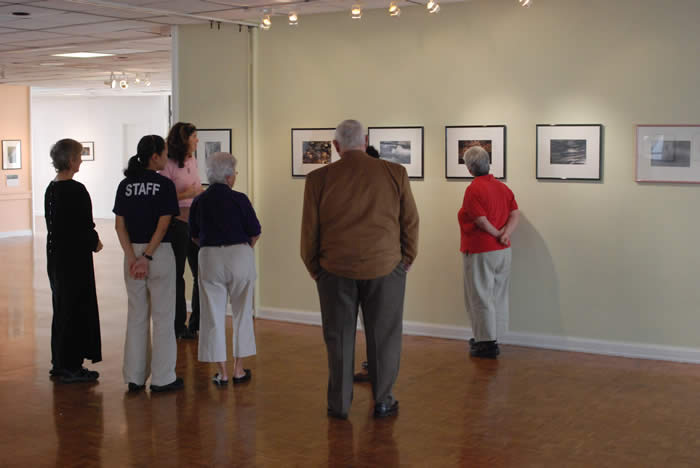 Marjorie (left) joins viewers as they tour her photo show at St. Petersburg's Pier Aquarium, part of the Pier's major three-month Celebration of Water from January to April, 2007. Photograph by Edward Lincoln (c) 2007.