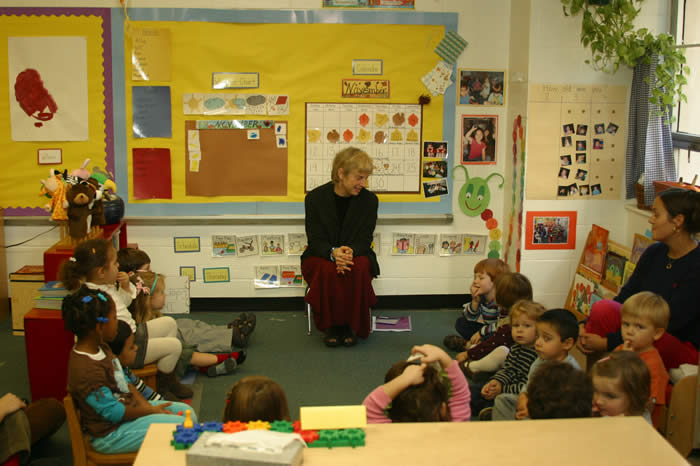 Students from St. Hilda's & St. Hugh's School, with Marjorie, New York City; Photograph by Mary Anne Holiday (c) 2006