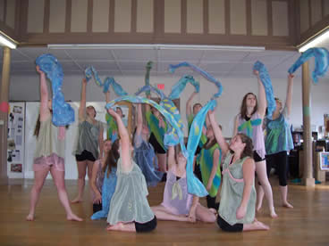 Nearly 100 Lyndon Institute students helped to create the water dance that the 13 dancers performed. Institute students read numerous books about water and its impacts on the earth and the human body. They wrote and shared creative writing about water, made silk scarves with one of the art teachers that look like and represent water, listened to and chose music for the water dance choreography, had presentations by physics, chemistry, and freshman science classes about various properties, states, and qualities of water as well as about the water cycle and took a field trip to watch and discuss the movie “Flow.” The dance students then designed their dance-movement phrases on the readings, presentations, and science studies about water that all the other students did.