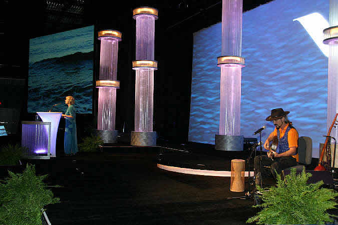 October 4, 2004: The annual meeting of the Water Environment Federation in New Orleans. Marjorie gave a performance/reading/and concert with Water Music blues musician John Ruskey during the Opening Ceremonies of this, the largest water conference in North America. Her book was sold at this conference, which was attended by approximately 19,000 water engineers from around the world. Below are two photos from that performance: