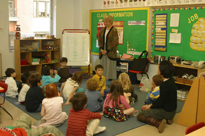 Students from St. Hilda's & St. Hugh's School, with Marjorie, New York City; Photograph by Mary Anne Holiday (c) 2006